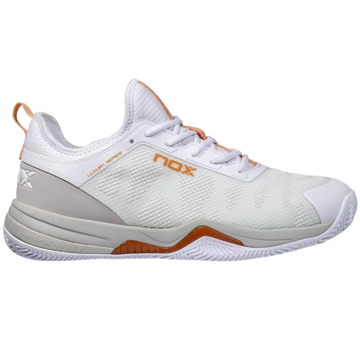 Fakta om Nerbo Luxury WhiteCoral Gold Padelsko fra NOX. NOX Nerbo Luxury WhiteCoral Gold er en sko designet for, at forebygge skader og optimere præsentationen på banen. UNISEX. Denne sko er både til mænd og kvinder. Teknologier i NOX Nerbo Luxury White